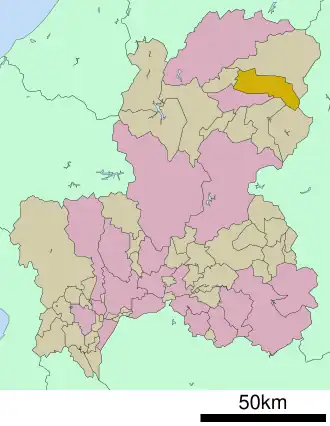 Nyūkawa (丹生川村, Nyūkawa-mura) was a village located in Ōno District, Gifu, Japan.