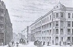 It was first proposed to clear the area in the 1840s but nothing happened. In September 1872, a committee was established. It received four proposals and the newly founded Kjøbenhavns Byggeselskab (Copenhagen Building Company) was ultimately charged with renewing the area. The new, wide street Ny Østergade was inaugurated in 1876.[2]