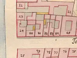 At the time of the next census, in 1834, Holm's property was home to 25 residents in five households. Rasmus and Christiane Holm resided on the ground floor with their two children (aged two and five), three apprentices and two maids.[9] Carl Friderichsen (1801-1849), a helmsman, resided on the first floor with his wife Præbene (née Jantzen, 1807-1880), their two children (aged one and four) and one maid.[10] Madsine Sophie Holm, Rasmus Holm's mother, resided on the second floor with her son Hendrich Peter Holm.[11] Rasmus Bang, a sailmaker employed by Holm, was also resident on the second floor with his wife Christiane Christensen and their three children (aged three to seven).[12] Peter Nicolajsen Skjerbeck, a barkeeper, resided in the basement with his wife Juliana Marie Kock, their 12-year-old son and one maid.[13]
