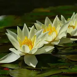 Nymphaea × helvola is an artificial waterlily hybrid of Nymphaea mexicana with Nymphaea tetragona[2][1] or Nymphaea pygmaea,[3][4][5][6] which has been naturalised in India.[7][8]