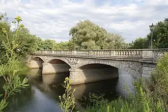 51°06′20″N 17°03′06″E / 51.10556°N 17.05167°E Oławski Bridge (Polish: Most Oławski) is a road bridge over the Oława River in Wrocław, Poland. It was also known as Mauritius Brücke or Margarethenbrücke (German), St. Mauritius Bridge (English), and (cattle drive bridge). It was constructed during 1882–1883 and was designed by Alexander Kaumann, with assistance from Eger and Reichelt,[1] Beer, Wackwitz and Hoffmann.