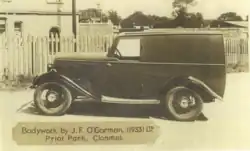 The 'O'Gorman' Coachbuilding business grew around 1920, when John F. O'Gorman bought and built a factory located at Prior Park, Clonmel, County Tipperary, Ireland. He also bought the stately 'Prior Park' house, which doubled as a store area, for the company. Together with his brother Jim, they made various horse-drawn two and four wheel vehicles. They also manufactured traps, gigs, landaus, jaunting carts, carriages, floats and dray carts. The main business however, was building bus, coach, van and lorry bodies.[2][3]