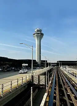 Control tower and Terminals 3 and 2 seen from ATS (Airport Transit System)