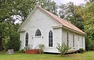 O'Kelly's Chapel is a historic chapel located near Farrington, Chatham County, North Carolina. Named after Reverend James O'Kelly, it was built about 1900. It is a modest one-room rural chapel with Gothic Revival features including a steeply pitched roof and lancet windows.[2]