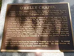 - ^ Document of the Southern Conference of the United Church of Christ, "A History of O'Kelly Chapel." Andes, K. June 6, 2013.