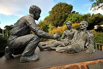 O'Reilly's is situated approximately 8.4 kilometres from the site of the 1937 Stinson plane crash (28°18′33″S 153°07′04″E / 28.309156°S 153.117789°E).[3] As a result, the site of the wreck has become a popular hiking destination with bushwalkers. O'Reilly's Rainforest Retreat infrequently organises guided treks to the wreck, but experienced bushwalkers are known to frequently attempt the hike. The hike is renowned for its difficulty due to the steep nature of the McPherson Range where the wreck is situated, and the thick, dense terrain of the rainforest.[15] A memorial to Bernard O'Reilly is located in the grounds around the guesthouse.[4]