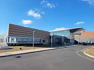 In the late 1950s, Meriden High School suffered from overcrowding. Two high schools were built in Meriden to relieve the overcrowding: Orville H. Platt High School, named after Orville H. Platt, and Francis T. Maloney High School. Platt first opened in September, 1958. The school was expanded in September 1970; additions included more classrooms, a graphics art department, library space, cafeteria space, a second gymnasium, and a swimming pool.[2] Starting in October 2013, the school underwent massive renovation, finishing fall 2017. These renovations included the addition of a new wing containing, among other things, a freshman academy and a vocational technology facility.[3]