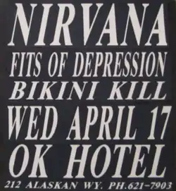 Most widely recognized as a prominent location in the movie Singles (1992), the OK Hotel was one of numerous active Seattle rock venues during the celebrated local scene of the late eighties. The first musical group to play live at the venue was local band Seers of Bavaria, featuring future bass player for pop-punk band Flop Paul Schurr on lead vocals. The club's debut headliner was Vexed, also from Seattle. Local bands such as Tad, Mother Love Bone, The U-Men, Screaming Trees, Green River (an early version of Mudhoney), Soundgarden, Bikini Kill, and Nirvana (including the first live performance of "Smells Like Teen Spirit" on April 17, 1991)[2][3] played at the OK Hotel; as well as touring punk, rock, and continental jazz artists. It is mentioned in "Thanx", the last track on Sublime's debut album 40 Oz. to Freedom. It was also where Queens of the Stone Age played their first live show.[4]