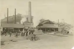 The smelter operated effectively though intermittently at first until all the flux and carrying arrangements were finalised. Tenders were called for the monthly carriage of 400 long tons (410 t) of matte (impure product of smelting) and ore, and back loading of 200 long tons (200 t) of coke and stores from Mungana. Tenders were also called for carrying 10 long tons (10 t) of limestone daily for 12 months. Abdul Wade, a shareholder of the company, obtained the contract for carriage to Mungana for which he used approximately 400 camels. They proved expensive, caused labour difficulties with the unions and were susceptible to the local poison bush. As a result, ten wood-burning traction engines were purchased by the company for transport to and from Mungana.[1][2]