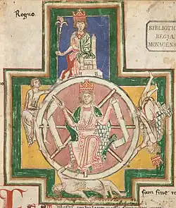 Orff was inspired both by the poem and the medieval symbol of the Rota Fortunae, or Wheel of Fortune, which the goddess Fortuna spins at random, causing some people to suffer while others find wealth. The Rota Fortunae appears in a version of the poetry collection known as the Codex Buranas. The repetition of the musical accompaniment draws a comparison to the spinning of the wheel.[2][3]