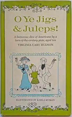 O Ye Jigs & Juleps! is a short book by Virginia Cary Hudson, first published in 1962 with illustrations by Karla Kuskin. It is a series of 10 short essays written by the then 10-year-old Hudson in 1904, while attending an Episcopalian school in "Leesville" (actually Versailles, Kentucky).[1] The essays concern religion to a considerable extent, but the book is largely known for its somewhat unintentional humor.[2] The book was a bestseller in 1962.[3]