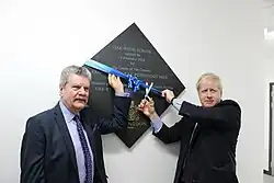 The school moved into its new building in January 2018. On 2 February 2018, Ray Puddifoot, Leader of the Hillingon Council, and Boris Johnson, MP for Uxbridge and South Ruislip attended[4] alongside headteacher Mark Bland. The pair unveiled a plaque in the school's entrance hall. Cllr Ray Puddifoot was a former pupil of the school.