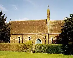 Oakhanger contains four Grade II listed buildings. Oakhanger Farmhouse is a two-storey house which dates from 1811 with late 19th century extensions. It consists of walls made of Flemish bond with blue headers, flat arches, and stone cills. The farmhouse became a Grade II listed building 18 July 1986.[13] Two stables which lie both east and north are also Grade II listed buildings: the stable to the east dates from 1814 and has yellow carstone walls, whereas the stable to the north was built in 1820 and has a hipped tiled roof.[14][15] The final listed building is a barn which lies 20 metres (66 ft) east of Oakhanger Farmhouse. It dates from the 18th century and consists of timber framed walls with sections of boarding, brickwork, and ironstone.[16] St Mary Magdalene's Church was built in 1873 by architect Moreton Glover. It is part of the Diocese of Winchester and has since never been restored nor is it a listed building.[17] On the fifth Sunday every month the church hosts a Benefice Holy Communion.[18]