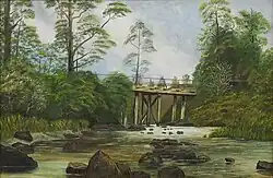 During European settlement in the mid 19th century, much of the catchment of the Oakley Creek was redeveloped into produce or dairy farms.[5] In 1845, entrepreneur Edwin Oakley established a flax mill, powered by the water of the creek. Over time, the English language name for the stream became Oakley Creek, or Oakley's Creek.[5][7] The first bridge across the creek was constructed at Mount Albert in 1854, and the Mount Albert adjacent to the creek developed into suburban housing in the 1920s and 1930s.[5]