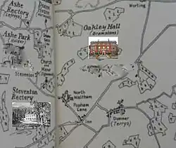 A national school, accommodating 120 students, was built in nearby Oakley on the property of W. W. Bramston Beach in 1855 and by 1872, it was expanded. A headmaster's cottage and a children's playground were further additions.[1] In 1940, Oakley Hall itself was used as a boarding school known as Hilsea College for the children of naval officers.[12] It 1973, it was reported that the estate included Tadley Place and Wyford Farm.[2]