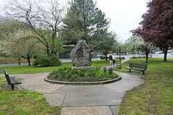 Amundsen Circle (officially Captain Roald Amundsen Plaza) is a traffic circle and 1.05-acre (4,200 m2) park bounded by Amboy Road, Clarke Avenue and Savoy Street. Amundsen Circle and the 4.5-mile (7.2 km) Amundsen Trail for joggers both commemorate explorer Roald Amundsen. The park was acquired by the city in 1928, and named on July 9, 1929. In the park, there is a stone plaque, erected in 1933, when there was a large Norwegian population in Oakwood, by the Norsemen Glee Club of Staten Island and the Norwegian Singing Society of Brooklyn. The park is maintained by the Richmond Ever-Green Garden Club.[5][6]