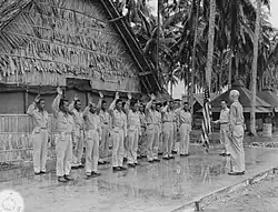 But even with these changes, the Certificate of Naturalization still lacked an actual "oath". Incoming citizens prior to 1906 would be deemed worthy only by the opinion of their judges.[15] It wasn't until 1929 that a written "pledge" of sorts was added to the application, and not until 1950 that the addition of bearing arms for the U.S. was officially added.[16]