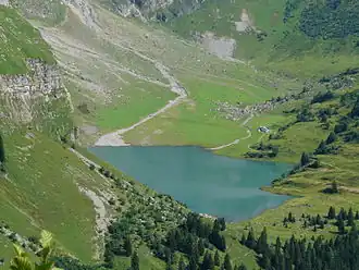 Oberblegisee is a lake in the Canton of Glarus, Switzerland. It is located at an elevation of 1,422 metres (4,665 ft), above the village of Luchsingen and below the peaks of Glärnisch. Its surface area is 0.17 square kilometres (0.066 sq mi).