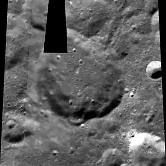 Oberth is a crater on the far side of the Moon. It lies in the high northern latitudes, to the southeast of the crater Gamow. To the east of Oberth is Avogadro.