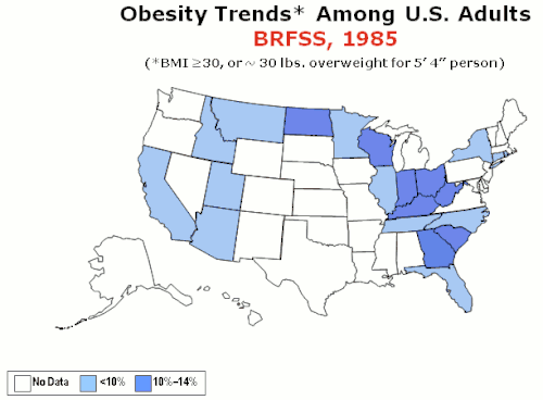 Note: study disagrees with findings of CDC cell phone survey, and obesity prevalence by state chart