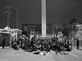 Occupy Dataran was an autonomous grassroots movement based in Kuala Lumpur,[1] that aims to create a platform to experiment participatory democracy based on the popular assembly model.[2] The Malaysian Insider reported that Occupy Dataran was an offshoot of Occupy Wall Street. The online news portal also reported that the Malaysian protesters were expressing solidarity with the New York protest movement as part of the 15 October 2011 global protests.[3] However, it is widely acknowledged that the first Occupy Dataran assembly was held on 30 July 2011,[4][5][6] seven weeks before Occupy Wall Street.