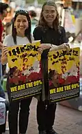 On November 16, hundreds of demonstrators, many of whom were California college students, marched through downtown San Francisco to protest the continuing tuition and fee hikes proposed and approved by the University of California Regents. Along the way, about 200 demonstrators staged a sit-in at a Bank of America branch. The bank was chosen because UC Regent Monica Lozano is on the bank's board of directors.[10] Some demonstrators jumped on desks and wrote on the wall in chalk. One man was seen urinating in the corner. Roughly 100 demonstrators remained in the branch, set up a tent, sat down, and linked arms. 95 demonstrators were arrested for trespassing.[10][11]