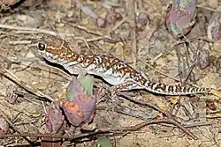 The ocelot gecko (Paroedura picta) is a crepuscular ground-dwelling gecko found in leaf litter in Madagascar forests[1] and is also a popular pet. It is sometimes known as the Madagascar ground gecko, Malagasy fat-tailed gecko, fat-headed gecko, panther gecko or pictus gecko