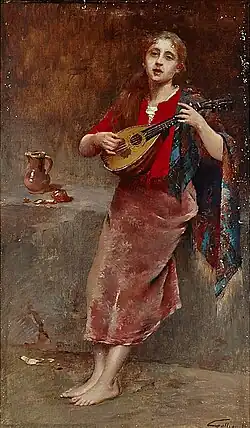To improve his skills, he attended at the École des Beaux-Arts in Paris, then enrolled at the Académie Julian, where he studied with Jules Lefebvre, Gustave Boulanger and Charles Ginoux[1].After graduating, he established his studio on the Rue du Faubourg Saint-Honoré, focusing primarily on female portraits. He maintained ties to his hometown, however, as a member of the "Atelier des Beaux-Arts de Toulon".