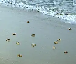- ^ a b c d K. G. Raja Bai Naidu (1951). "Some stages in the development and bionomics of Ocypoda platytarsis". Proceedings of the Indian Academy of Sciences, Section B. 33 (1): 32–40.