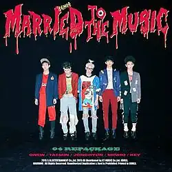 The repackaged album Married to the Music included four additional songs: "Married to the Music", "Savior", "Hold You" and "Chocolate".[18][19][20] "Married to the Music" is described as funky disco and is the work of LDN Noise, Kenzie, Zak Waters, and Adrian McKinnon. "Savior", produced by Zak Waters and written by Kenzie, is characterized by trendy and sensual lyrics. "Hold You" is a R&B song which was produced by Stereotypes and Deez. "Chocolate", a medium-tempo R&B track written by group member Jonghyun and Yankie, is described as a charming love story that is sweet like chocolate.[21] The choreography of the title song, "Married to the Music," is the work of Greg S. Hwang and Tony Testa.[22]