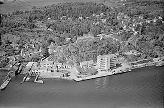 Aerial view of Jotun facilities in Sandefjord. (1947)