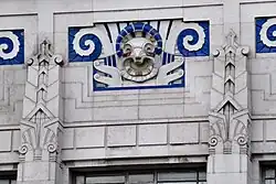 The building has a steel frame clad in brick. The façade, faced with faience, is in neo-Egyptian-influenced Art Deco style. Above the entrance, there are windows with Art Deco chevrons in the metal glazing; above these are Ionic capitals featuring lion masks.[1][3]