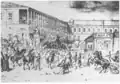 The next day, radical students and revolutionaries armed themselves and encouraged other workers to lend them support. About 4000 workers, including many Jews, went on strike.[10] On October 16, students took to the streets and attempted to erect barricades. Several were killed by the police, others taken to Jewish hospital wounded, and one policeman was also killed. Although a public funeral had been planned for the students, the Odessa city governor, D. M. Neidhart, seized the bodies and had them buried secretly to limit rallying around the deaths. On October 17 the Manifesto was promulgated, prompting celebration from the community for their new freedoms. Neidhart posted placards against the radical organizing at the university. The university rector asked for protection from the military but did not receive it. Neidhart denied the request for the citizen's militia, and ordered the police off the streets, supposedly for their own protection, and didn't ask Kaul'bars for any help either, leaving Odessa's Jews vulnerable. [35]