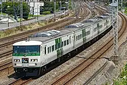 On the now retired 185 series, the 15 car formation made the Odoriko the longest Limited Express train running in Japan (excluding shinkansen trains).[3] They were formed as follows, with car 1 at the Izukyū-Shimoda/Shuzenji end.