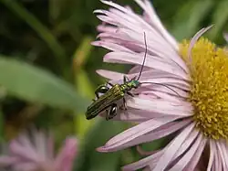 The family Oedemeridae is a cosmopolitan group of beetles commonly known as false blister beetles, though some recent authors have coined the name pollen-feeding beetles. There are some 100 genera and 1,500 species in the family,[1] mostly associated with rotting wood as larvae, though adults are quite common on flowers. The family was erected by Pierre André Latreille in 1810.