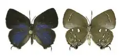 - ^ Faynel, C.; Busby, R. C.; Robbins, R. (2012). "Review of the species level taxonomy of the neotropical butterfly genus Oenomaus (Lycaenidae, Theclinae, Eumaeini)". ZooKeys (222): 11–45. Bibcode:2012ZooK..222...11F. doi:10.3897/zookeys.222.3375. PMC 3459029. PMID 23129985.