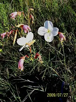 Oenothera nuttallii, the white-stemmed evening-primrose, is a species of flowering plant in the family Onagraceae.[2] It is native to western Canada (except British Columbia), and the north-central United States, and it has been introduced to Illinois.[1] A perennial reaching 60 cm (24 in), it is found in grasslands, sagebrush steppes, and plains, usually in sandy soils.[2]