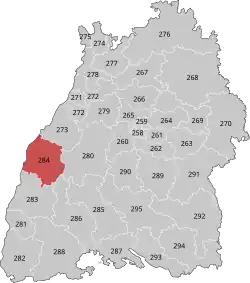 Offenburg is an electoral constituency (German: Wahlkreis) represented in the Bundestag. It elects one member via first-past-the-post voting. Under the current constituency numbering system, it is designated as constituency 284. It is located in western Baden-Württemberg, comprising the northern part of the Ortenaukreis district.[1]