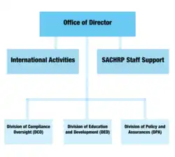As a leader in the DHHS, the Office of the Director oversees all functions of the OHRP and works closely with DHHS officials including the Secretary of Health and Human Services and the Assistant Secretary for Health to ensure that human research policies, plans, and procedures meet ethical standards. The committees that fall under the Office of the Director include International Activities and the Secretary's Advisory Committee on Human Research Protections (SACHRP).