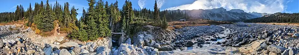 It is the main headwater tributary of the Cowlitz River, which begins at the confluence of the Ohanapecosh River and the Clear Fork Cowlitz River. The Ohanapecosh originates near Ohanapecosh Glacier on the southeast side of Mount Rainier. Most of the river is within Mount Rainier National Park. Its final reach is in Gifford Pinchot National Forest.[8]