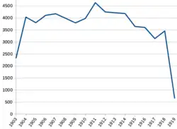 The ballast pit closed in 1940 and the stockyards were removed in 1973. A goods shed, loading bank, passing loop and fertiliser siding remained in 1980, but the station closed to all but wagon loads on 21 July 1980 and to all traffic on Saturday, 19 April 1986.[9]