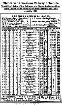 - ^ Cass, Edward H. (1997). Hidden Treasures: The Story of the Ohio River & Western Railway.