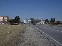 The entire length of SR 710 lies within the northern portion of Franklin County, and entirely within the city limits of Columbus. SR 710 starts at SR 161. The first part of SR 710 is located in Busch Boulevard, a north–south road.[5][6] SR 710's western terminus is located in Busch, a business area.[7] Later, Busch Boulevard ends and SR 710 turns east to Schrock Road[5][6] and later makes a turn south to Cleveland Avenue, another north–south road.[5][6] Here, SR 710 makes up the border of Northgate, a residential area.[8] The route ends at a seven-ramp partial cloverleaf interchange with I-270 that features loop ramps in all but the northwestern quadrant.[5][6]