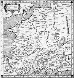 Classical geographers such as Pliny, Claudius Ptolemy, and Strabo have already mentioned the Vascon city of Oiasso.[4][5] In his Naturalis Historia, Pliny, drawing from a text dated to 50 B.C., expanded the territory of the Vascones to the westernmost part of the Pyrenees towards the location of Oiarso. This place has traditionally been interpreted as the Oyarzun mountains. He referred to this area by the term Vasconum saltus, which is adjacent to the Cantabrian Sea.[6] Later, in the 2nd century during the imperial era, Ptolemy mentioned two locations for Oiassó in Chapter 6, 10 of his book Geographikè Úphégesis. He referenced a city with the Ancient Greek name Οίασσώ πόλις (translated as "City of Oiassó") and another location known as the "Promontory of Oiassó of the Pyrenees" (Οίασσώ άκρον Πυρήνης).[7][8] Based on this reference and another mention by Ravenate, [9] Julio Caro Baroja [10] suggested that Oiasso should be understood as a dispersed nucleus with two centers: a city and a port.