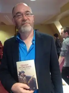 Darach Ó Scolaí at 'Oireachtas na Gaeilge 2015', with the book 'Oileán an Órchiste' his translation and adaptation of the famous book 'Treasure Island' by Robert Louis Stevenson