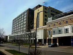 (left to right) in the distance are the Conventus building, Oishei Children's Hospital, and Buffalo General Hospital Building A.