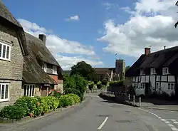 Okeford Fitzpaine /ˈoʊkfərd fɪtsˈpeɪn/ is a village and civil parish in the English county of Dorset, situated in the Blackmore Vale three miles (five kilometres) south of the town of Sturminster Newton. It is sited on a thin strip of greensand under the scarp face of the Dorset Downs.[1] In the 2011 census the civil parish—which includes the village of Belchalwell to the west and most of the hamlet of Fiddleford to the north—had 404 dwellings,[2] 380 households and a population of 913.[3]