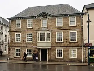 The current building was commissioned by John Northmore, an attorney to the Court of King's Bench.[4] It was designed in the neoclassical style, built in ashlar granite and was completed in 1685.[1] The design involved a symmetrical main frontage with five bays facing onto Fore Street; the central bay featured a doorway flanked by pilasters supporting a canted bay window with an ogee-shaped roof on the first floor; there was a sash window with a cornice supported by consoles on the second floor. The outer bays were fenestrated with sash windows on all three floors. At roof level, there was a modillioned cornice which was broken to create an open pediment above the central bay.[1] Internally, the principal room was a large wooden panelled reception room on the ground floor.[1]