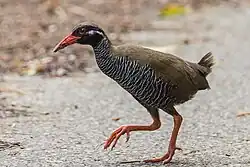 The Okinawa rail (Hypotaenidia okinawae) is a species of bird in the rail family, Rallidae. It is endemic to Okinawa Island in Japan where it is known as the Yanbaru kuina (ヤンバルクイナ(山原水鶏), "Yanbaru rail"). Its existence was only confirmed in 1978 and it was formally described in 1981 although unidentified rails had been recorded on the island since at least 1973 and local stories of a bird known as the agachi kumira may refer to this species.[2]