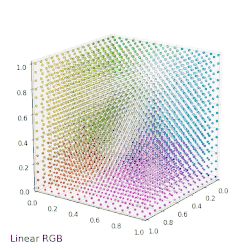 Visualize how linear color values map to locations in perceptual color spaces